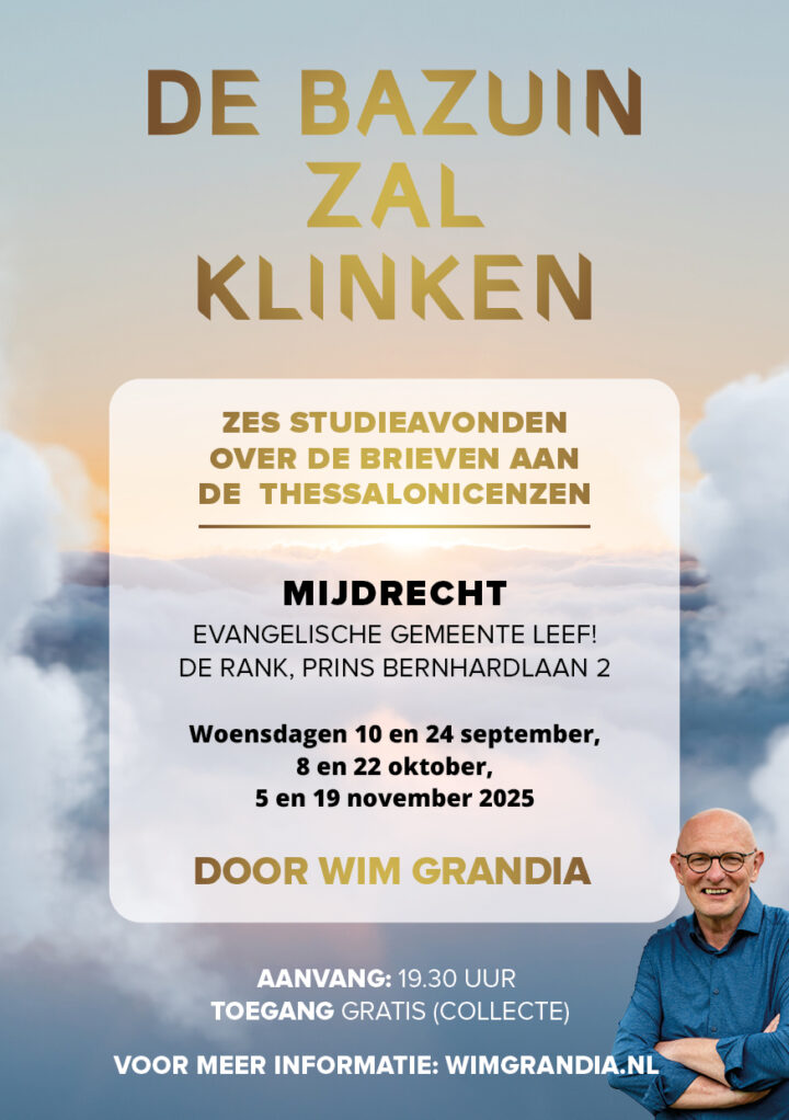 Vanaf DV september 2025 start er op twaalf plekken in het land – waaronder Mijdrecht – een inspirerende serie bijbelstudieavonden onder de titel ‘De bazuin zal klinken’. In zes avonden zullen de twee brieven van Paulus aan de Thessalonicenzen worden behandeld.